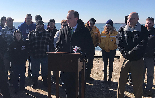 (Long Island, NY) Congressman Lee Zeldin (R, NY-1) was joined by local elected officials, small business owners, boaters, fishermen, and other stakeholders at the Moriches Yacht Club in Center Moriches, calling on the Army Corps of Engineers to undertake an immediate emergency dredging of the Long Island Intracoastal Waterway, Moriches Bay and Moriches Inlet in light of several winter storms that have pummeled area waterways and significantly worsened navigation conditions.